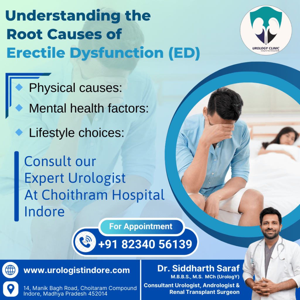 If you are experiencing ED or any other urological issues, consult Dr. Siddharth Saraf, an Expert Urologist in Indore, at Choithram Hospital, Indore. He specializes in Minimally Invasive Urology Treatment in Indore, offering advanced and effective solutions for erectile dysfunction and related concerns.