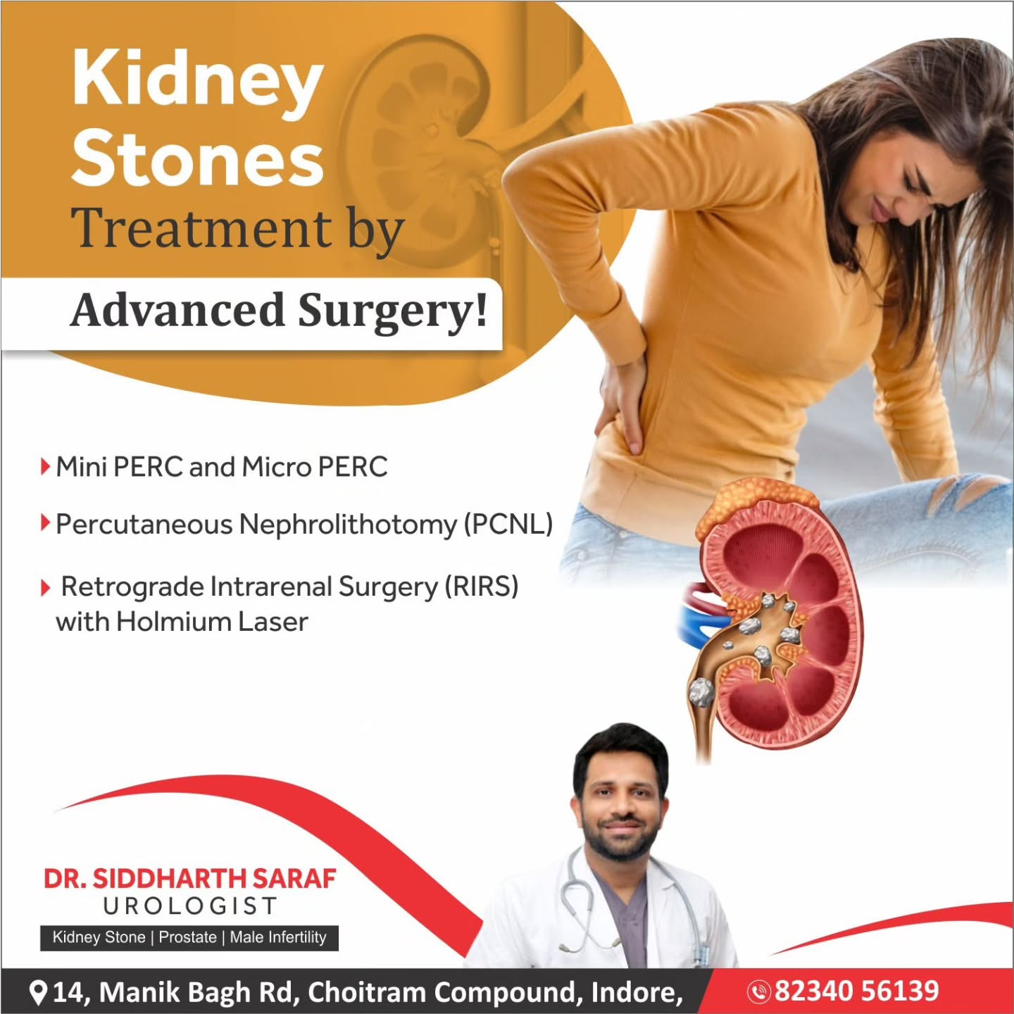 Dr. Siddharth Saraf, a leading Consultant Urologist (MBBS, MS, MCh Urology), has 8+ years of expertise in endo-urology, renal transplants, laparoscopic urology, and urethral reconstruction. Known for his advanced surgical skills and patient-focused care, he is a trusted name in urological treatment.